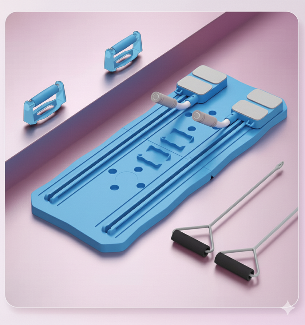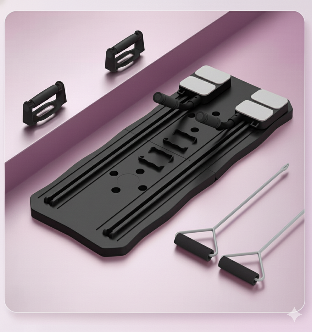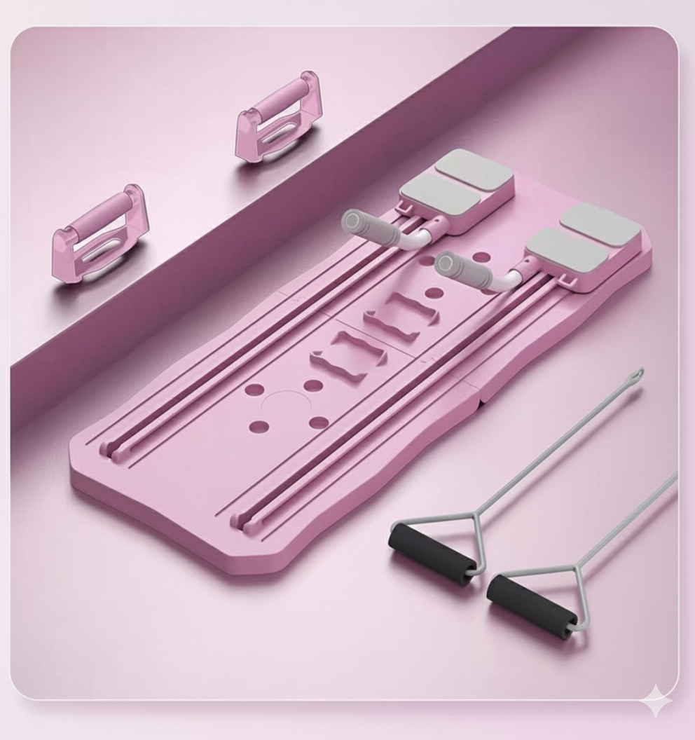 Tabla multifuncional para realizar pilates desde casa o desde cualquier lugar. Alcanza tus objetivos de fitness con la Tabla de Pilates 5 en 1, la combinación perfecta de pilates y entrenamiento de cuerpo completo en un equipo compacto.
